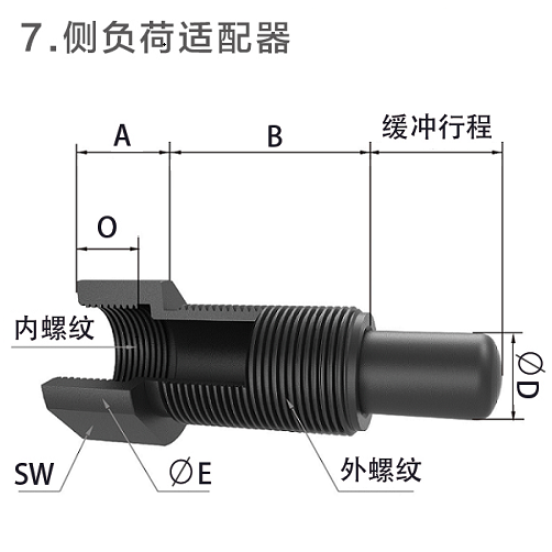 注意:只能用于不帶消音冒的緩沖器,承受較大側負荷角度小于30°